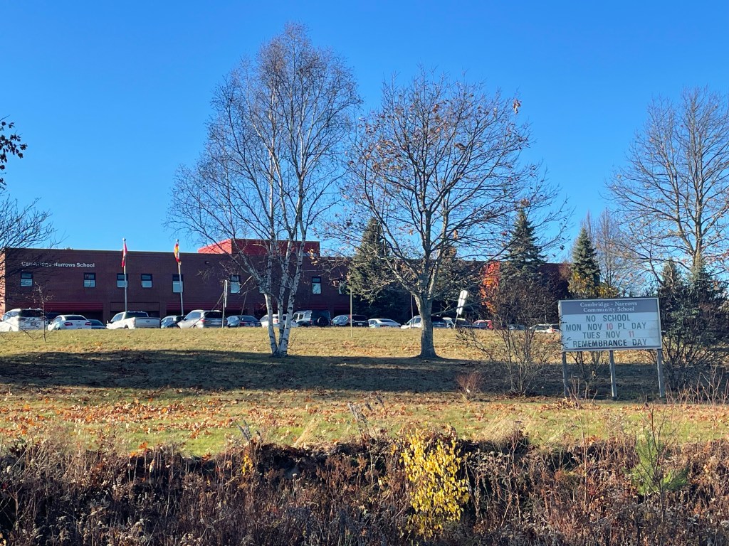 The Cambridge-Narrows school has Grades 1 through 12 with approximately 240 students. It sits almost directly across the Washademoak Lake from this east coast waterfront property.